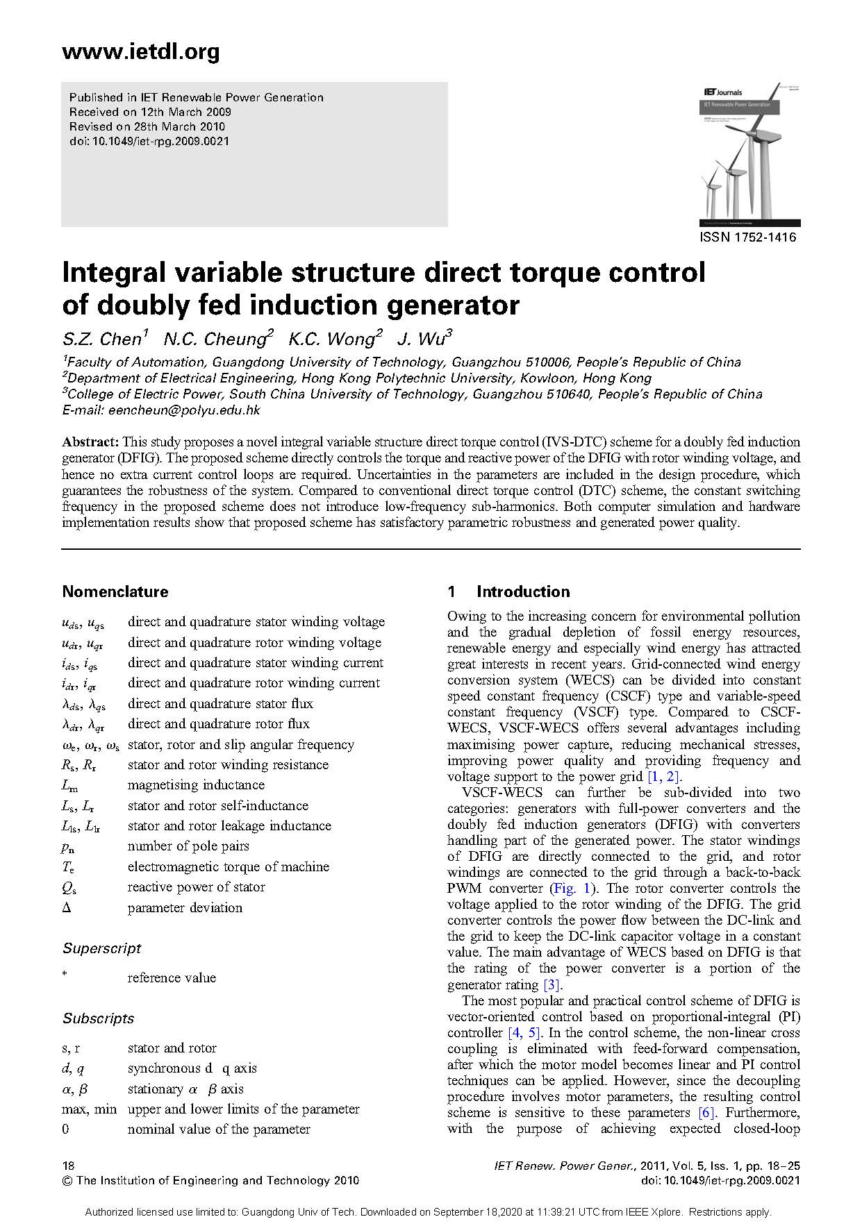 发表刊物:IET Renewable Power Generation