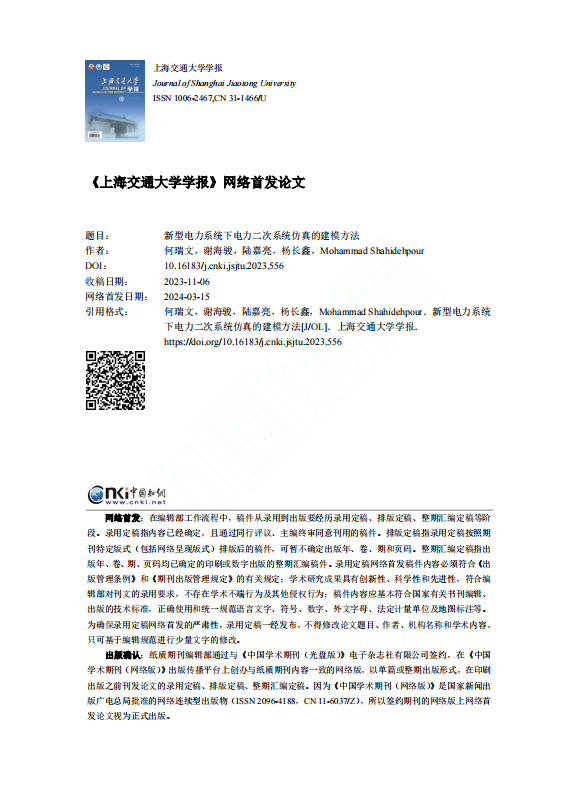 发表刊物:上海交通大学学报,网络首发
