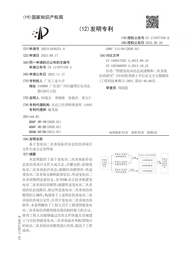 基于变电站二次系统拓扑信息的仿真项目文件生成方法及终端