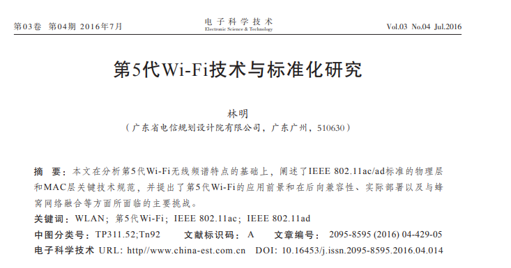 Key Words:WLAN, 第五代Wi-Fi, IEEE802.11ac, IEEE802.11ad