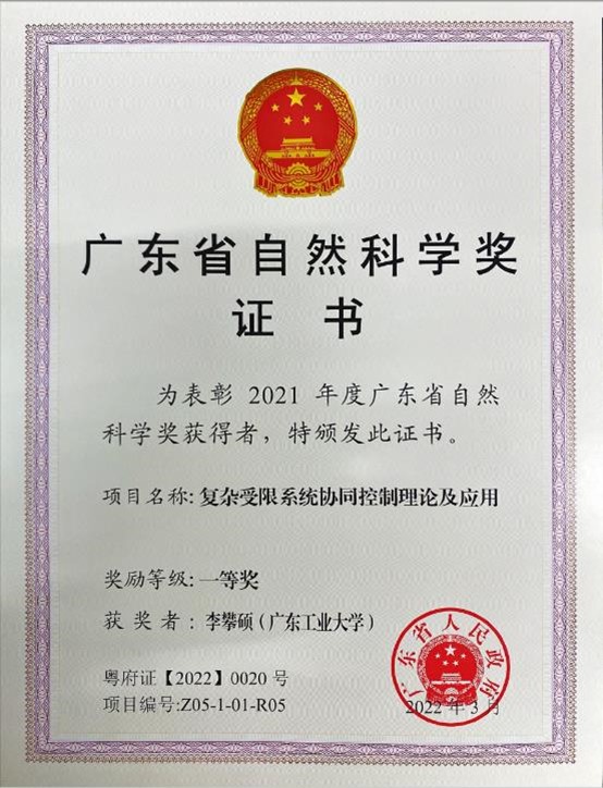 - Title of Achievement:复杂受限系统协同控制理论及应用
