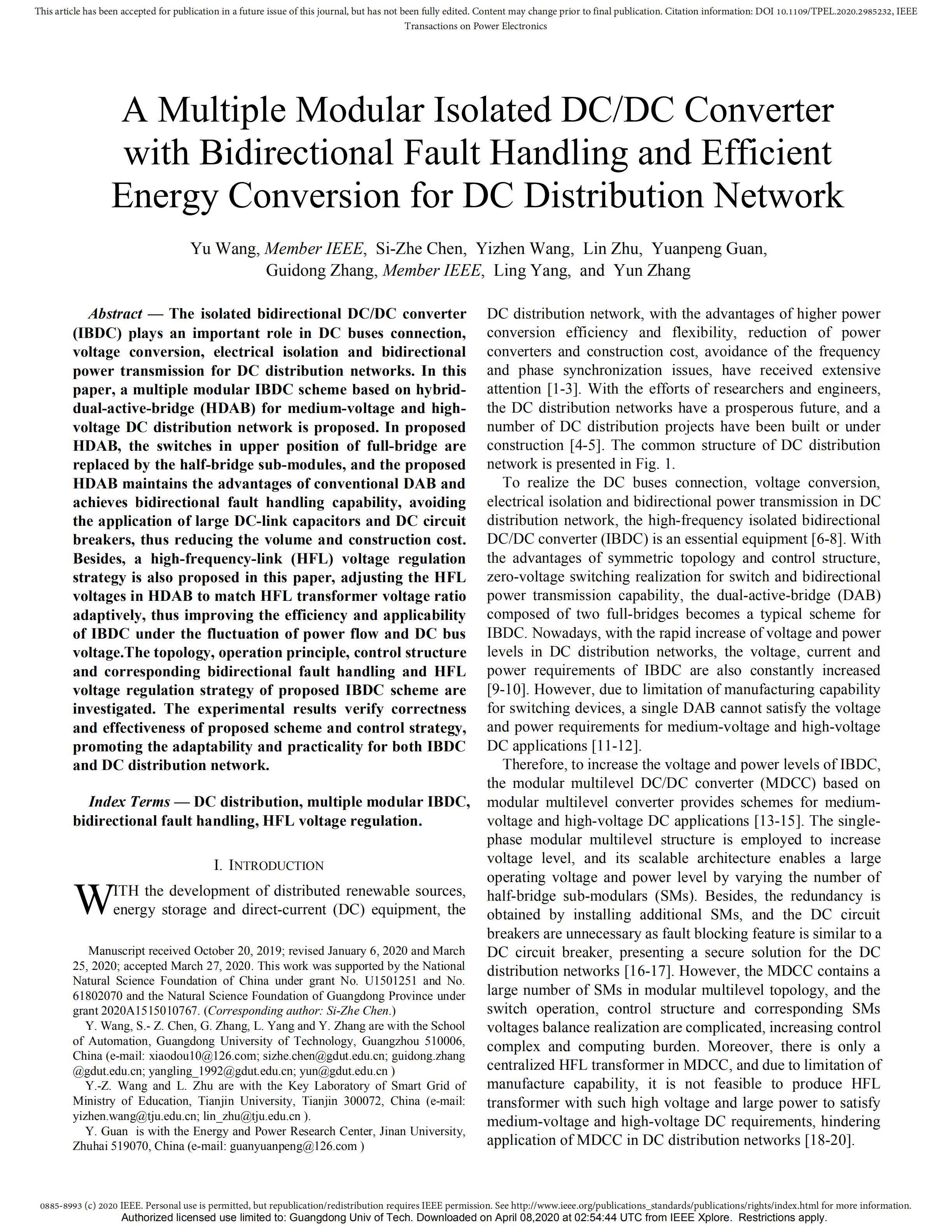 A Multiple Modular Isolated DC/DC Converter with Bidirectional Fault Handling and Efficient Energy Conversion for DC Distribution Network