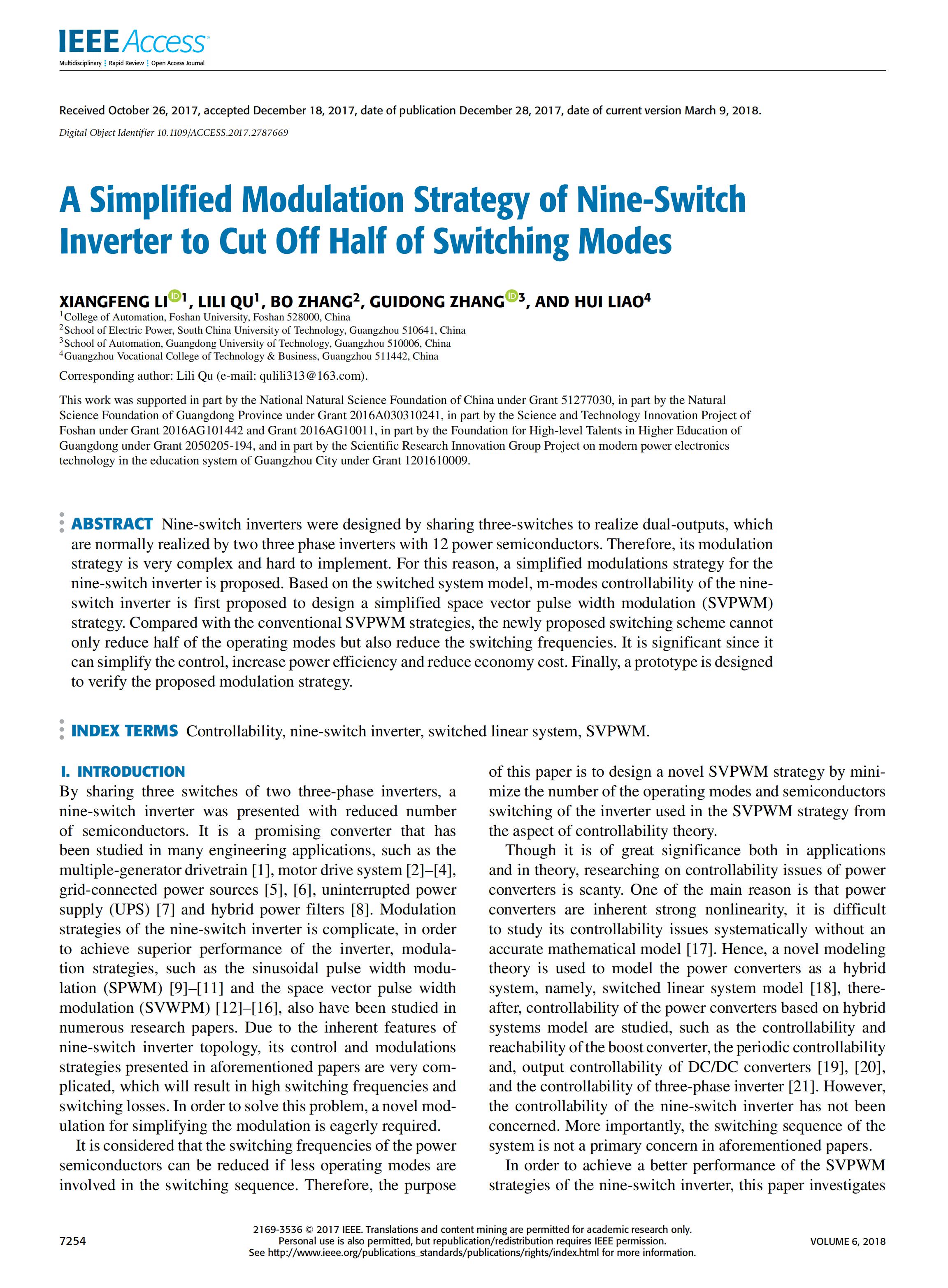 A Simplified Modulation Strategy of Nine-Switch Inverter to Cut Off Half of Switching Modes