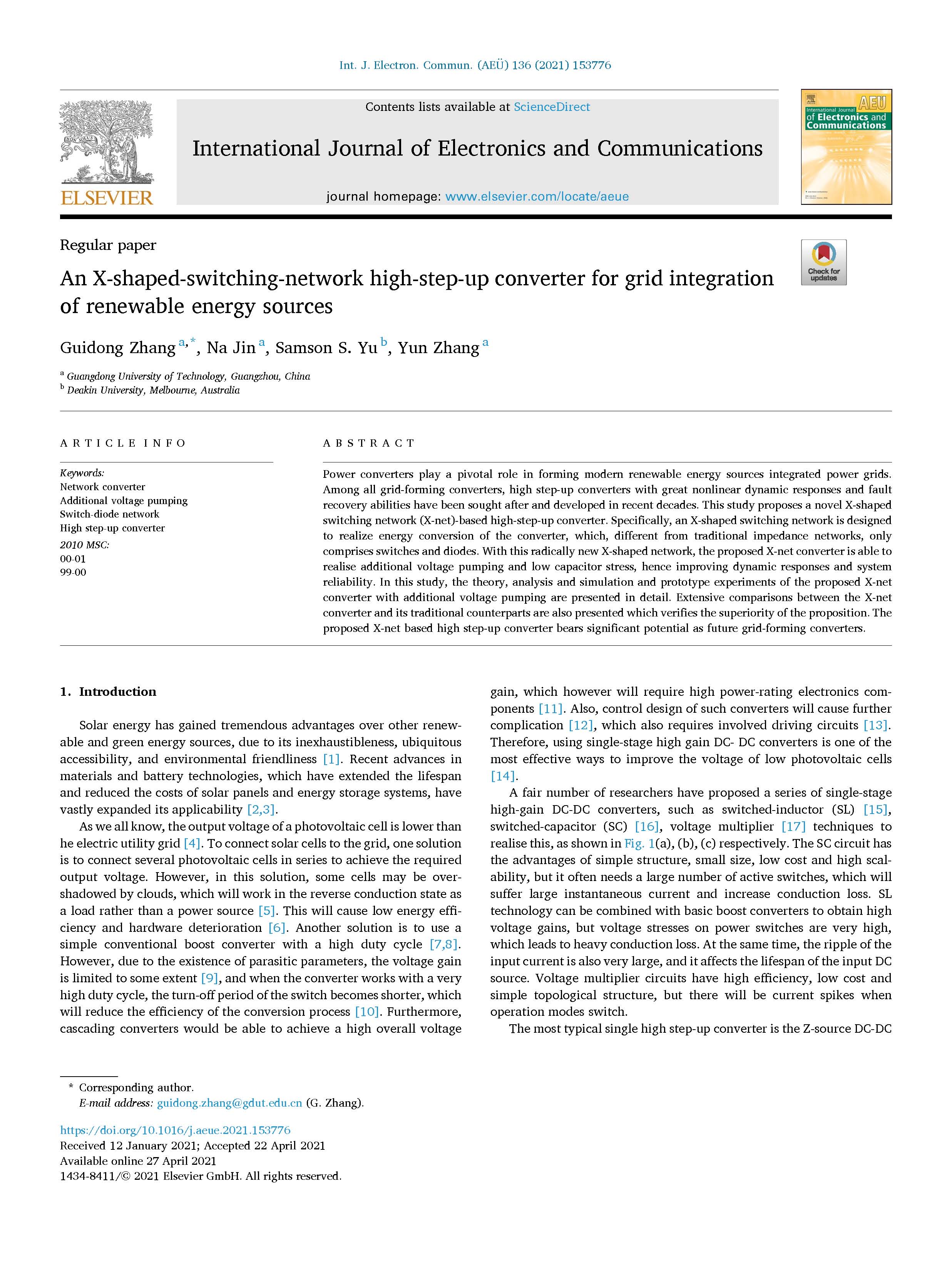 An X-shaped-switching-network High-step-up Converter for Grid Integration of Renewable Energy Sources